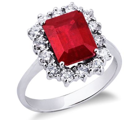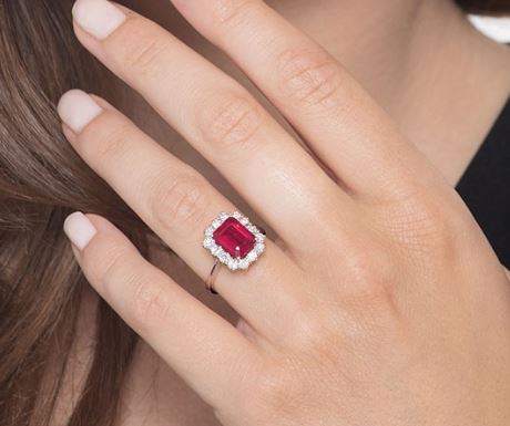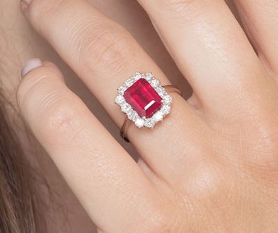 Pietre Diamanti e Rubino - Metallo Oro bianco - Timbro metallo 750 millesimi / 18k - Caratura Brillanti totale 0.65 - Caratura rubino Rubino 3.78 - Brand Gioielli di Valenza