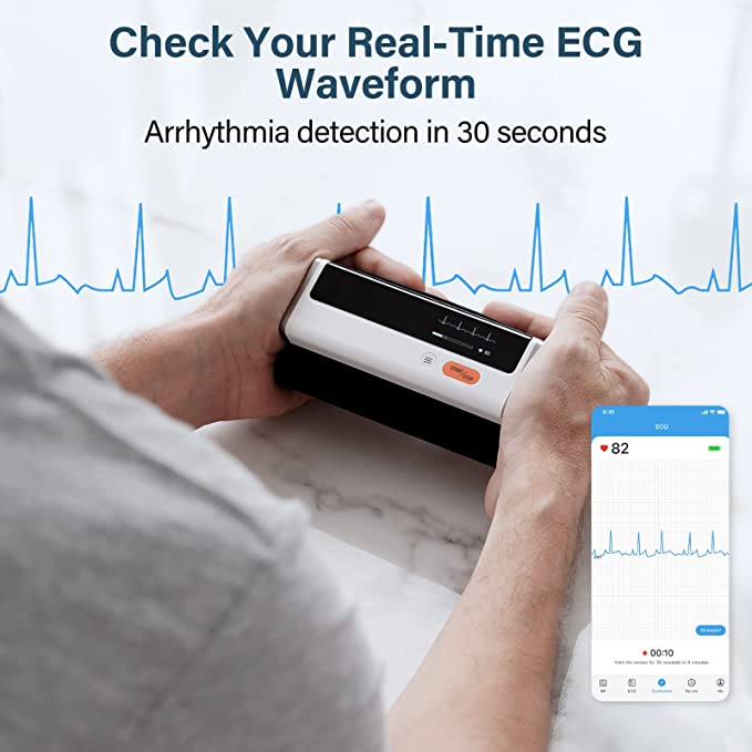 Monitor della salute tutto in uno: Controlla la pressione sanguigna e l'ECG con un solo dispositivo portatile. Fornisce forme d'onda per sistole, diastole, frequenza del polso, frequenza cardiaca ed ECG, monitorando in modo completo le condizioni del tuo cuore. Facile da usare: solo 2 pulsanti, segui le istruzioni sullo schermo, controlla il tuo stato di salute entro 30 secondi. I risultati istantanei sono visualizzati sullo schermo OLED del dispositivo. La memoria integrata può memorizzare 10 serie di forme d'onda ECG e 50 serie di dati sulla pressione sanguigna. App per Android e iOS: Memorizza tutta la tua cronologia dei dati nell'app. I dati vengono sincronizzati con l'app quando il dispositivo è collegato al telefono. Un rapporto facile da leggere ti aiuta a capire meglio il tuo stato e puoi condividere il tuo rapporto con gli altri con un clic. Portatile e in movimento: il design compatto e monoblocco rende facile monitorare la tua pressione sanguigna nel comfort della tua casa, in viaggio o al lavoro. Compatibile con Apple Health - È possibile sincronizzare i dati della pressione sanguigna con Apple Health. (Nota: i dati ECG non sono compatibili)