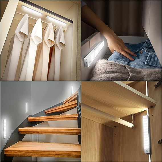 Luce Armadio LED con Sensore di Movimento Luci Notturna 36 LED 4 Modalità Lampada Guardaroba Luce da Esposizione 1000mAh USB Ricaricabile Cucina, Scale, Corridoio, Garage - 23cm*2 Pezzi