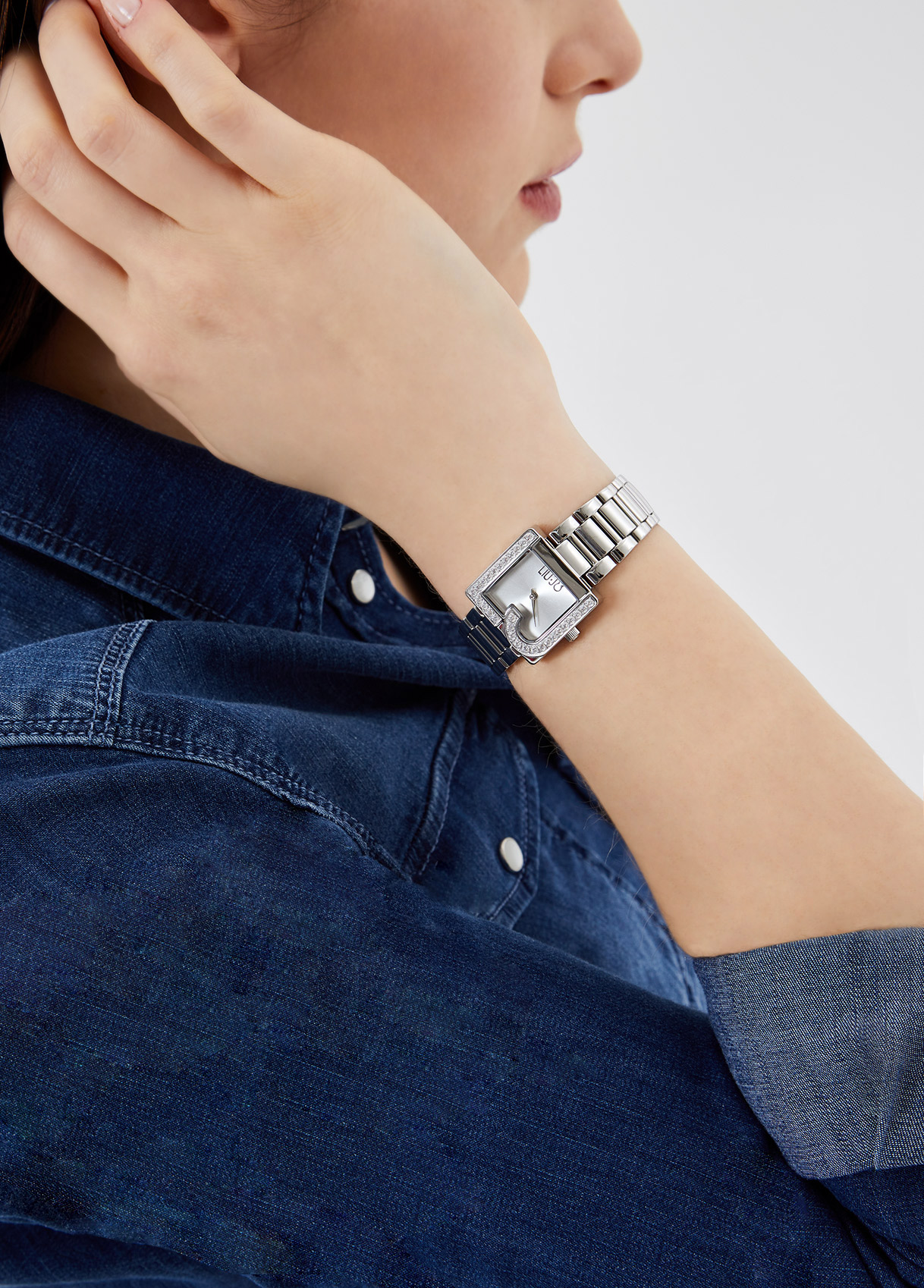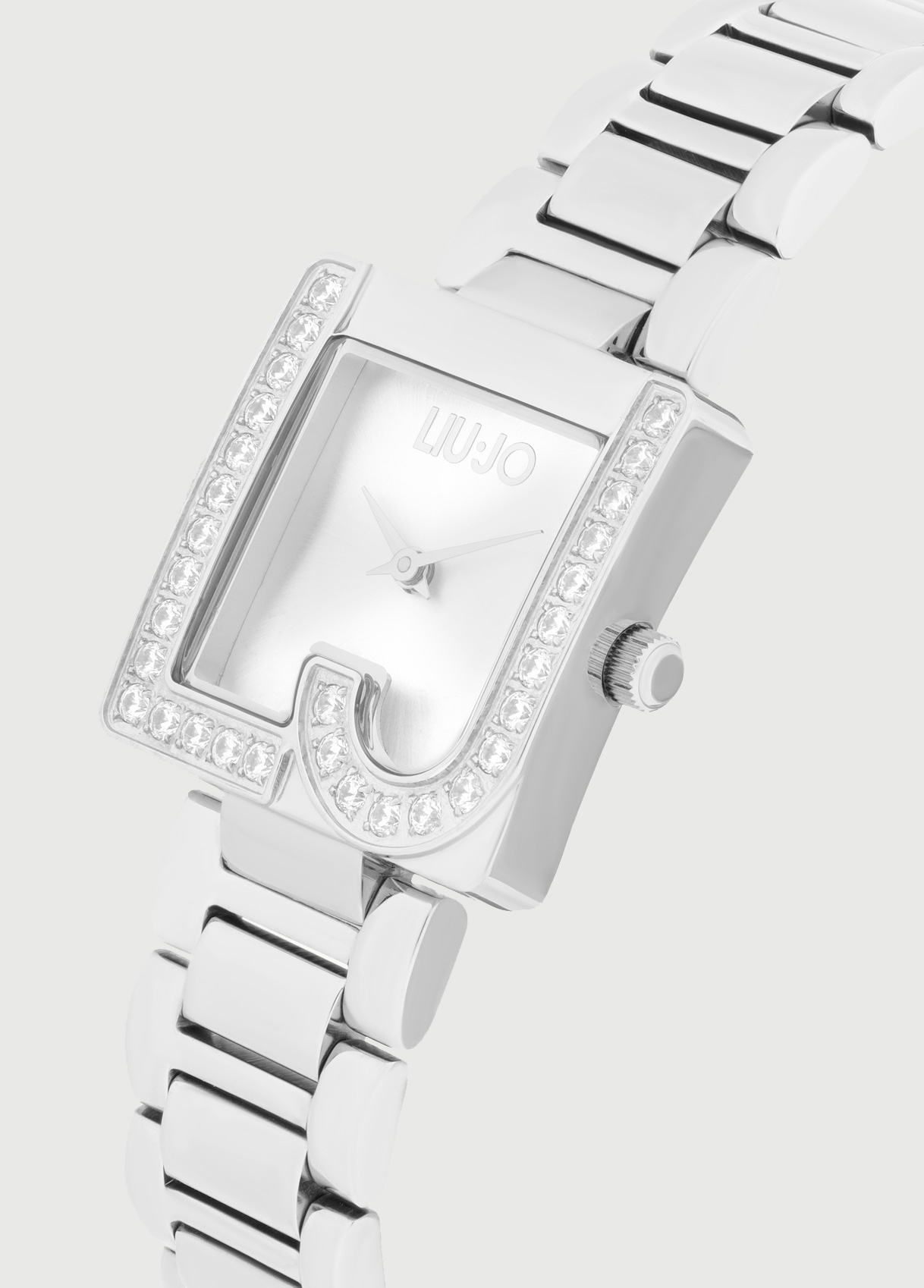 Orologio in acciaio nichel free - Galvanica color argento - Cassa rettangolare con logo - Brill applicati - Misura cassa: 24 x 30,5 mm - Quadrante silver - Chiusura deployante - Impermeabile fino a 3 atmosfere - Movimento al quarzo Miyota cal. VJ20