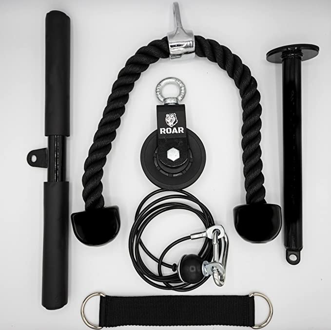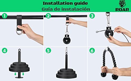 Carrucola per home gym realizzata in cavo d'acciaio ad alta densità, durevole e resistente. Inoltre, anche il resto dei componenti della confezione è stato prodotto con processi di fabbricazione avanzati. Puoi eseguire diversi esercizi grazie alle due diverse impugnature che questo pacchetto include, sia la corda che la barra dritta. In questo modo, puoi allenare più muscoli diversificandoli in diversi esercizi. Per tricipiti e bicipiti, schiena, spalle ecc. Questo kit di pulegge per l'allenamento a casa è portatile e facile da installare, quindi puoi portarlo con te ovunque e svolgere la tua sessione di allenamento dove preferisci. 1x puleggia, 1x cavo di carico metallico con rivestimento, 1x set di protezioni (metallico) per una maggiore durata del cavo insieme alla sua chiave per l'installazione, 1x perno di carico, 3 moschettoni, 1x barra diritta metallica, 1x fune spessa multifunzionale