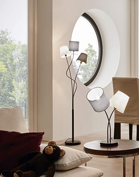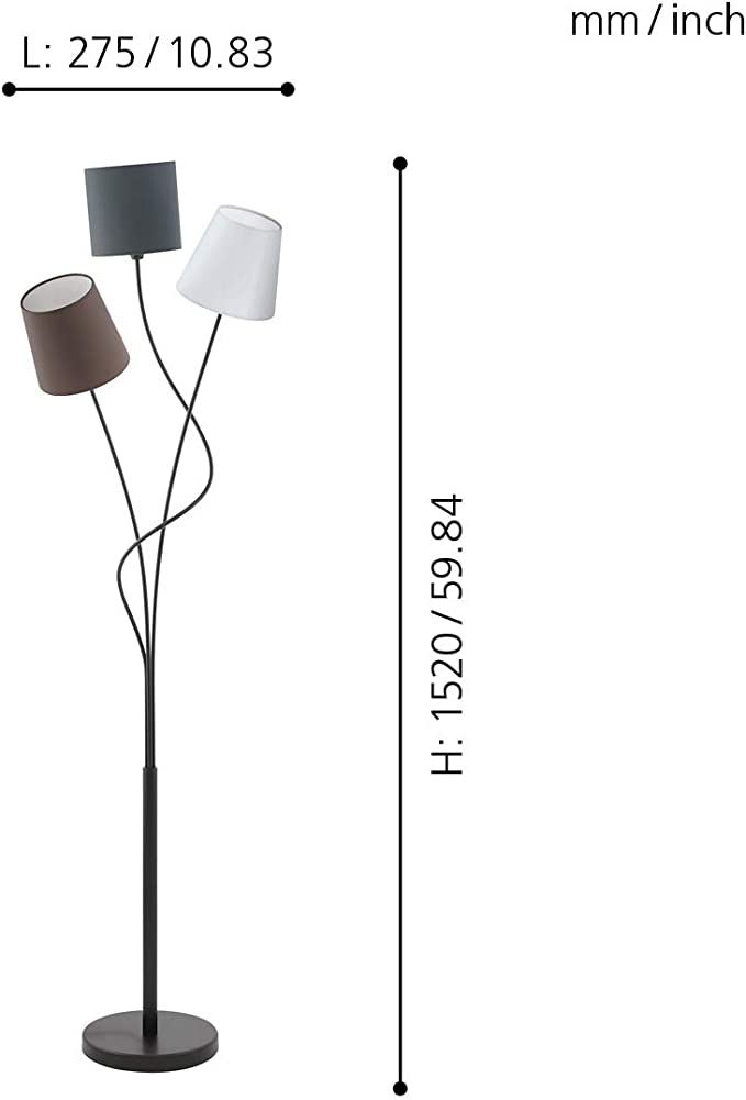 EGLO. Lampada da terra Maronda, lampada a stelo a tre punti luce, lampada da terra in acciaio e tessuto, nero, antracite, bianco, marrone, attacco E14, incluso interruttore a pedale