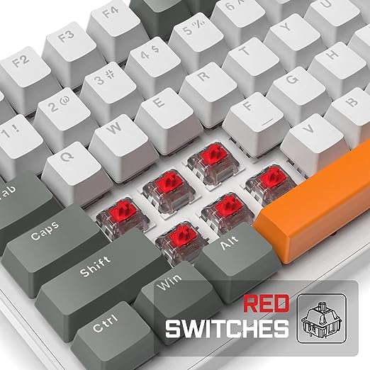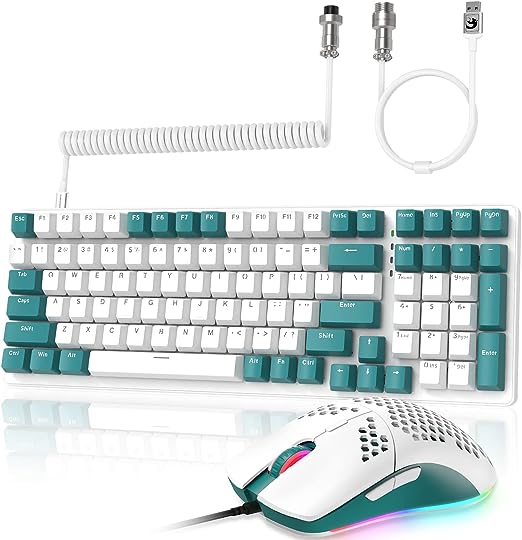 La tastiera da gioco compatta a 98 tasti ha una dimensione perfetta ed è adatta a tutti gli ambienti, ai giochi di viaggio d'affari, all'uso domestico dell'ufficio. L'altezza della chiave è progettata secondo l'ergonomia e non è facile affaticarsi dopo un uso a lungo termine. E la dimensione è compatta e facile da eseguire.10 modalità di retroilluminazione, copritasti a iniezione bicolore in ABS, retroilluminazione uniforme cristallina. Classici interruttori blu, con una durata di 50 milioni di volte, clic e feedback tattile. Perfetto per scrivere in ufficio o giocare. Il design alla moda dei copritasti multicolori ti rende unico.Tastiera progettata con precisione, design ergonomico, facile da pulire. Pannello in metallo, struttura resistente e premium. Bella linea strutturata sul retro con poggiapiedi regolabili per soddisfare le tue esigenze. La tastiera viene fornita con un cavo a spirale di alta qualità, presenta quattro fili di rame di alta qualità e un foglio di schermatura in alluminio come anime. La trasmissione dei dati è più efficiente e stabile. Durevole materiale TPU, che offre una maggiore resistenza alla compressione. Il cavo da USB-C a USB-A supporta una ricarica rapida e sicura e la velocità di sincronizzazione dei dati. Realizzato in metallo interamente in acciaio, pieno di trama, blocco plug-in a vite, connessione stabile, per prevenire la perdita di dati durante la trasmissione; Il cavo aviator usb a spirale è staccabile e facile da installare, cavo dritto da 1,1 m. La lunghezza della parte a spirale del filo può raggiungere i 220 cm e l'intero filo può raggiungere i 330 ~ 350 cm. Il mouse da gioco leggero ha un guscio perforato a nido d'ape a forma di O accuratamente progettato e pesa solo 2,43 once (69 g). Il mouse da gioco modificabile ha 7 pulsanti modificabili e utilizza un sensore ottico ad alte prestazioni che può essere regolato a 6400 DPI (6 livelli, 800/1600/2400/3200/4800/6400). 6 fantastiche opzioni di illuminazione possono soddisfare le diverse esigenze di retroilluminazione del mouse.