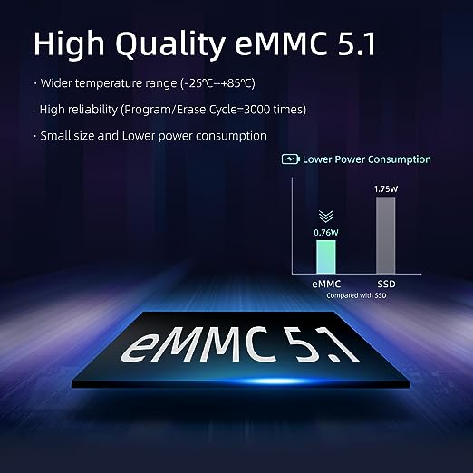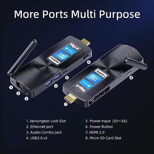 Potente ed efficiente - Dotato di processore Celeron N4000 fino a 2,6GHz con sistema operativo Windows 11 Home preinstallato come un computer tradizionale e supporta l'installazione di Ubuntu e dei sistemi operativi Linux. Supporta Wake on LAN / PXE / Auto Power on / RTC Wake, perfetto per un'ampia varietà di utilizzi come attività d'ufficio di base, uso personale, streaming multimediale, home theater, istruzione online, conferenze, segnaletica digitale e IOT industriale. Memoria e archiviazione, capacità più ampia espandibile - Memoria integrata da 4 GB di RAM LPDDR4, 128 GB di archiviazione eMMC a bordo, con uno slot per schede Micro SD che può essere aggiunto separatamente per espandere l'archiviazione fino a 2 TB. - Design senza ventola, tascabile e portatile - La tecnologia senza ventola con rumore di 0dB offre un'esperienza silenziosa e confortevole durante il lavoro. Il computer, dal design palmare, può essere messo in tasca e trasportato facilmente per un viaggio di lavoro. - WiFi 5 e Bluetooth 4.2, per una navigazione veloce e stabile - La porta LAN RJ45 gigabit ethernet da 10/100/1000 Mbps è integrata e fornisce una connessione stabile a velocità elevata, garantendo uno streaming più fluido e download più veloci. Il Bluetooth 4.2 consente di connettersi facilmente ad altri dispositivi, permettendo di gestire più attività e progetti contemporaneamente. - Il pacchetto include: 1x PCG02 Mini PC Stick, 1x adattatore di alimentazione DC, 1x spina UK, 1x spina GS, 1x Manuale Utente