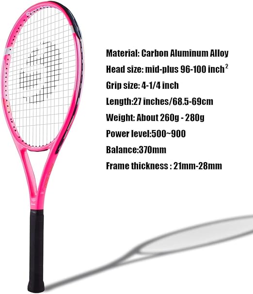 Parametri della racchetta – Lunghezza: 68,5 cm – 69 cm. Misura testa: media+619,4 – 645,2 cm. Dimensioni impugnatura: 2 = 4-1/4 di pollice - Leggera: racchetta realizzata in lega di carbonio (peso non cordato: 260-280 g), leggera e facile da tenere e oscillare, ti offre una comoda esperienza sportiva. Design speciale: con l'introduzione di una tecnologia stampata monopezzo, la racchetta da tennis ha la caratteristica di alta intensità e durata. Non solo combina una buona accelerazione di colpo, ma fornisce anche un controllo sufficiente della corsa. Prestazioni ad alto costo: la confezione include 1 racchetta da tennis, con 1 custodia protettiva di alta qualità, 1 overgrip (colore casuale), 1 ammortizzatore a vibrazione (colore casuale).