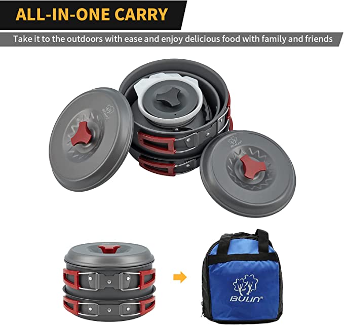 Ideale per 3-4 persone: Il set da campeggio comprende 2 pentole con coperchio, 1 padella, 1 bollitore, 1 mestolo pieghevole, 4 ciotole, 2 piatti e 1 pezzo di spugna per la pulizia. Possono soddisfare pienamente le esigenze di cottura di 3-4 persone. Sicuro e rispettoso dell'ambiente: Realizzato in alluminio anodizzato duro e sicuro, questo apparecchio per esterni è resistente all'usura, alle alte temperature, alla corrosione e fornisce un riscaldamento veloce e uniforme. Cucchiaio, ciotola e piatto sono fatti di materiale PP senza BPA per uso alimentare, ecologico e durevole. Pieghevole & Camping Light: Le maniglie pieghevoli sulle pentole, padella e cucchiaio da zuppa salvare il vostro spazio e rende il set di cottura compatto; Il set di pentole da campeggio può essere impilato insieme dopo l'uso; Le materie prime e spezie per la cottura possono essere memorizzati nella pentola; Una bella borsa consente di imballarlo ordinatamente