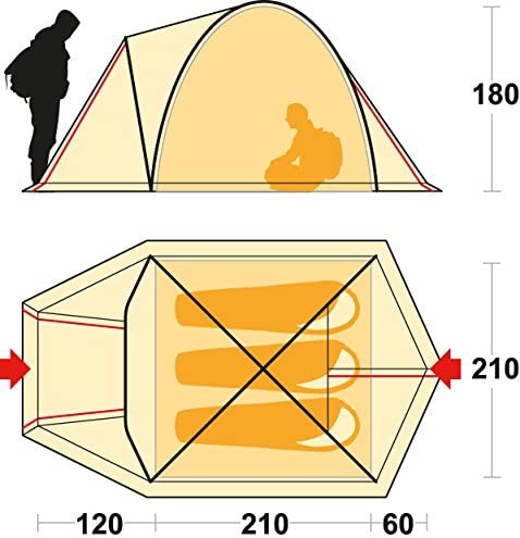 Dimensioni 391.16 x 210.82 x 180.34 cm; 6.8 Kg - Capienza 3 Persone - Stile Shaba - Materiale Vetroresina, Poliestere - Marca Ferrino - Tre pali in vetroresina precollegati - Palo veranda preformato che consente abitabilità superiore - Arco veranda con riferimento colore differenziato per facilitare il montaggio - Picchetti in acciaio - Tenda interna sospesa alla paleria con ganci per montaggio rapido - Porte con zanzariera esterna completamente apribili e riponibili in apposito taschino - Sistema di ventilazione “Air Ventilation System” con ampia zanzariera, cuffie di ventilazione - Falda a terra, che garantisce un'ottimale aerazione quando è arrotolata e protegge l'interno della tenda in caso di cattivo tempo, se srotolata