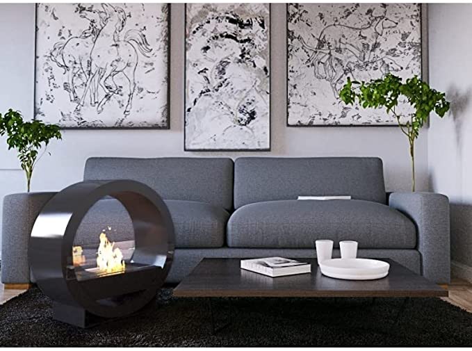 Bio camino David Dugez a parete o incasso. 62 cm nero con vetro e bruciatore regolabile in acciaio - 1,5 litri
