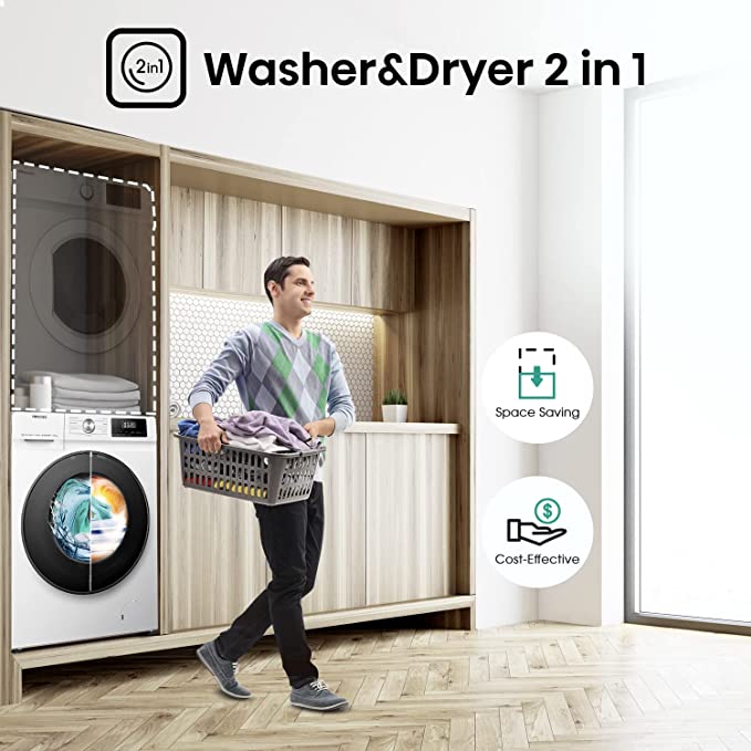 Lavatrice e aciugatrice in un'unica macchina: risparmia spazio con grande capacità 106kg - Jet wash: usa la potenza dell'acqua per un boost al tuo bucato - Programmi con vapore, per capi igienizzati e morbidi - Grande apertura porta per un facile carico e scarico del tuo bucato Lava e asciuga in un'ora, lava i tuoi capi fino a 1kg in 15 min e asciuga in 45 min - Dimensioni del prodotto: 61P x 59,5l x 84,5H cm -