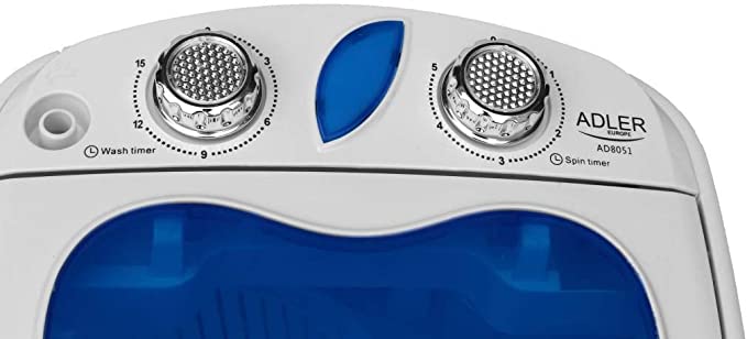 Marchio Adler Dimensioni del prodotto 33P x 36l x 50H cm - Capacità 3 Chilogrammi - Posizione di accesso Carica dall'alto - Colore Blu - Alterna opzioni Centrifuga, Scarico, Delicati, Abbigliamento sportivo - Ideale per piccoli capi di biancheria e capi delicati - Programma di lavaggio (15min.) - Basso consumo di acqua ed energia; Tubo di scarico incluso. Ideale per piccoli appartamenti, cottage, durante il viaggio; Capacità di lavaggio: fino a 3 kg - Capacità di filatura: fino a 1 kg - Potenza nominale: 150 W; Potenza massima di lavaggio: 400 W; Potenza di centrifuga massima 580 W.