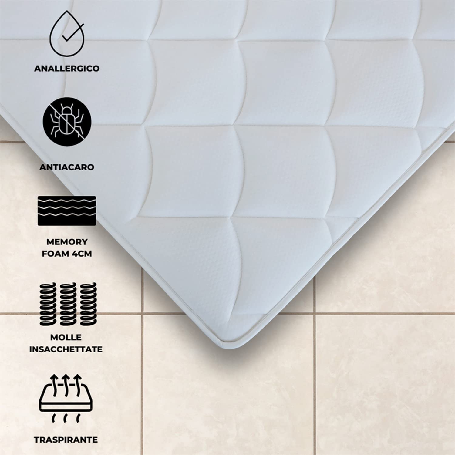 Materasso Memory Foam - 1600 Molle Insacchettate. H30 cm - Anallergico e traspirante. Dispositivo Medico Classe 1.Prodotto in Italia. Comodità senza precedenti grazie allo speciale strato in Memory Foam del materasso che, sfruttando 9 differenti aree garantisce il supporto adatto in ogni posizione. Il materasso Iride si adatta alle vostre esigenze con la presenza di ben 1600 molle insacchettate singole - Il materasso Iride è un presidio medico, riconosciuto dal Ministero della salute come prodotto in grado alleviare dolori ossei e muscolari - Il materasso Iride è il risultato del lavoro di più generazioni di esperti del settore, prodotto interamente in Italia - Materasso con certificazioni OEKO TEX Standard 100, CertiPUR e marchio CE. Il materasso è prodotto rispettando i più alti standard di qualità. Zero rischi di allergia, grazie al particolare tessuto traspirante studiato dal produttore. Con Iride non avrai il rischio che acari e batteri si annidino nel tuo materasso