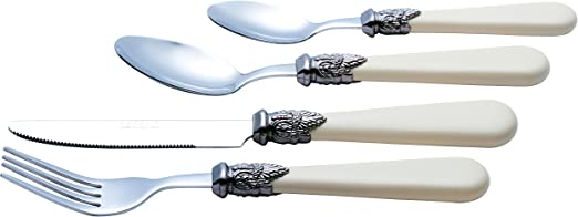 Marchio Exzact - Numero di pezzi 24 - Materiale Acciaio inossidabile - Peso articolo 1.02 Chilogrammi - Resistente alle macchie - Include 6 forchette, 6 coltelli da pranzo, 6 cucchiaini da tè e 6 cucchiai da tavola. Nel colore della crema color avorio, con dettagli splendidamente incisi - Dimensione in lunghezza: Coltello da tavola 22 cm, Forchetta per la cena 20,5 cm, Cucchiaio da tavola 20 cm, Cucchiaino da tè 17.5 cm. Materiale: acciaio inossidabile premium lucidato a specchio e ABS, antigraffio e resistente;