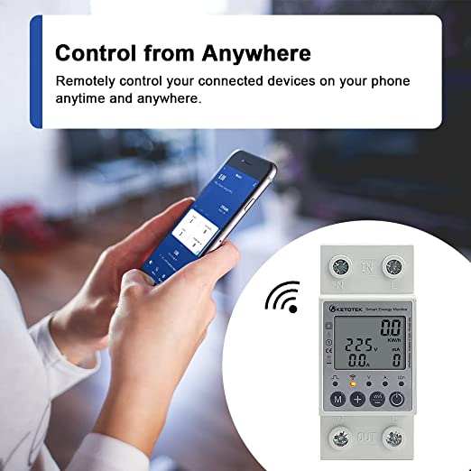 KETOTEK - Smart Contatore Energia Eelettrica - Monofase Misuratore Consumo Elettrico su Guida DIN WiFi Digitale LCD Energy Meter KWh Meter con Smart life APP - 【Power Monitor Multifunzione】 Questo contatore di energia digitale monofase è progettato per monitorare il consumo di elettricità. Con un ampio schermo LCD, visualizza tensione, corrente e potenza. Gli utenti possono impostare facilmente sovra/sottotensione, limiti di corrente, allarme corrente di dispersione e tempo di riconnessione. (Nota: la funzione prepagata nell'APP non è disponibile) - Telecomando e Controllo Vocale Questo misuratore di consumo elettrico wireless ha la comunicazione WIFI e può utilizzare l'APP Smart Life/Tuya per leggere i dati, accendere/spegnere da remoto e controllo dei tempi. Non è più necessario monitorare tramite il misuratore stesso. È anche compatibile con Alexa e Google Assistant e può controllare i dispositivi con i comandi vocali. (NOTA: il router supporta solo 2,4 GHz, NON 5G.) - Funzione di Protezione da Sovraccarico Quando la corrente nominale, la tensione o la corrente di dispersione di un circuito supera un valore predeterminato, Interruttore magnetotermico differenziale interrompe automaticamente l'alimentazione e continua a provare a ripristinare l'alimentazione dopo aver atteso il