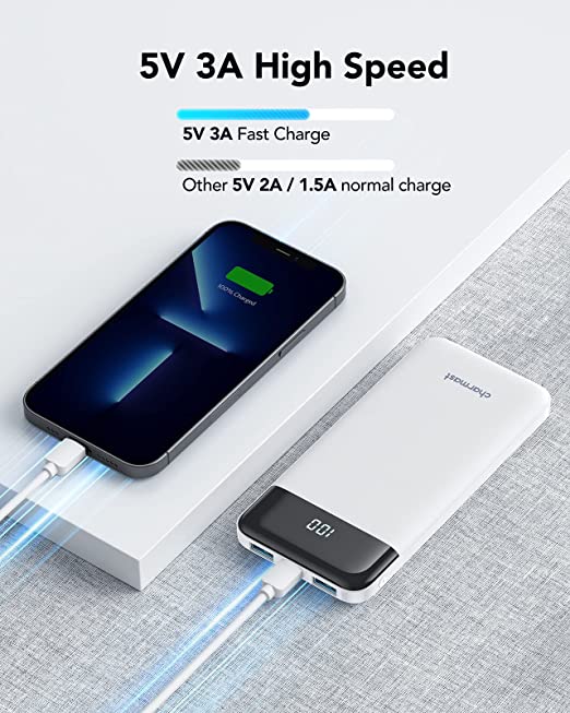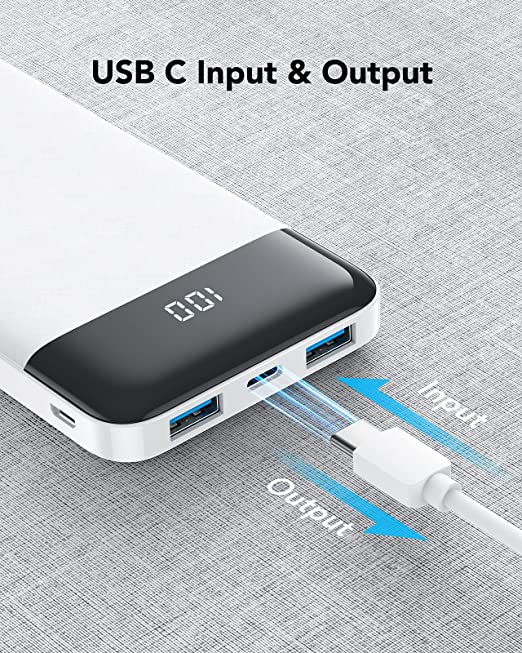 Power Bank 10400 mAh, USB C - Caricatore portatile con LED Digitale - Display - Batteria Esterna Portatile con 2 ingressi e 3 uscite da 5V/3A
