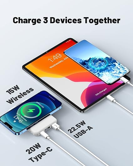 Compatibile con MagSafe Caricabatterie Wireless: specifico per la ricarica wireless della serie iPhone 15/14/13/12 con l'esclusiva tecnologia di nano adsorbimento,ha un forte assorbimento magnetico, non sono necessari cavi, puoi caricare rapidamente il telefono posizionandolo su esso, non facile da cadere, facile da trasportare.(Compatibile con MagSafe custodie o senza custodie) - Supporto pieghevole: Dispone di un versatile cavalletto pieghevole integrato che mantiene il tuo iPhone 15/14/13/12 in posizione verticale per un comodo angolo di visione. il caricatore portatile mag-safe ha un peso di soli 0,45 libbre e uno spessore di 0,85 pollici. Puoi metterlo facilmente in tasca o nello zaino, portarlo con te ovunque. Ricarica Rapida Wireless e Cablata: supporta la ricarica wireless da 5 W, 7,5 W, 10 W e 15 W max, 22,5 W USB PD max e ingresso e uscita USB-C da 20 W; Il power bank magnetico può caricare 3 dispositivi contemporaneamente - Protezione Multipla Di Sicurezza: il caricatore magnetico portatile Yiisonger ha 8 nuclei di ghiaccio a bassa temperatura integrati con un sistema di sicurezza multi-protezione completo, sovraccarico, sovracorrente, sovrascarico, surriscaldamento, protezione da cortocircuito ecc. LED Smart Display: puoi sapere quanta batteria è rimasta con il display digitale chiaro semplicemente premendo il pulsante di accensione sul lato