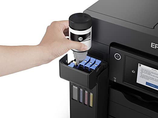 Epson EcoTank ET-5800, Stampante Multifunzione, Stampa Fronte/Retro, Scansione, Copia, Fax, Formato A4, ADF, 2 Vassoi Frontali da 250 Fogli, Wi-Fi, LCD 10.9 cm. Ricca di funzionalità: ET-5800 è progettata per attività di stampa, scansione, copia e fax in formato A4; la selezione delle funzioni è semplice con il touchscreen LCD da 10,9 cm - Velocità di stampa e scansione ultraveloce fino a 25 pm; grazie alla rapidità della stampa fronte/retro e dello scanner ADF da 50 fogli, 2 vassoi anteriori da 250 fogli e uno posteriore da 50, si velocizzano le attività quotidiane - Facile da usare: riempire i serbatoi di inchiostro anteriori è semplice grazie ai flaconi richiudibili e antigoccia. Inoltre la testina di stampa PrecisionCore con tecnologia senza calore è rinomata per la sua velocità, qualità ed efficienza La gamma EcoTank offre serbatoi di inchiostro ad alta capacità che si riempiono con pratici flaconi - Stampa ovunque tu sia: con EcoTank è semplice stampare da cellulari, tablet e laptop. Con Wi-Fie Wi-Fi Direct, puoi inviare documenti da stampare da dispositivi mobile utilizzando l’app Epson iPrint