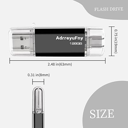 Chiavetta USB C 128GB, Pen Drive 128GB Type C Flash Drive 2 in 1 OTG Pennetta USB 2.0 Memoria Stick per Smartphone, Laptop, PC, Tablet (Nero)