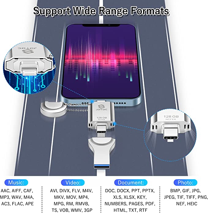 Apple MFi 128GB - Chiavetta-Lightning USBper-iPhone-Pendrive 3 in 1 - iPhone Memory Stick - iPad - Chiavetta USB C per Android e iPhone