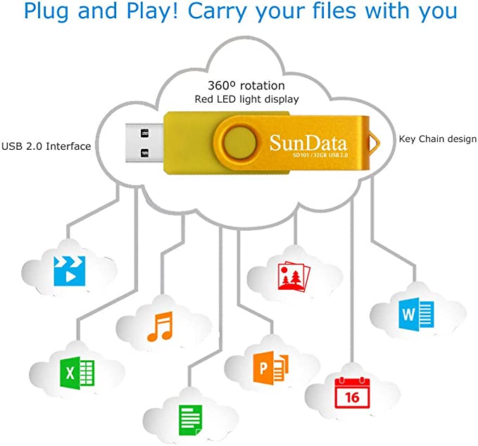SunData - Chiavetta USB 32GB 5 Pezzi - Girevole - USB2.0 - Flash Drive - Thumb Drive Memoria - Stick per Archiviazione Dati con Luce LED (5 colori: Nero Blu Verde Rosso Oro)