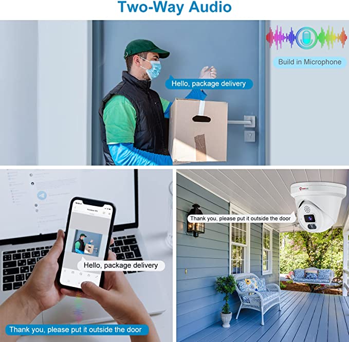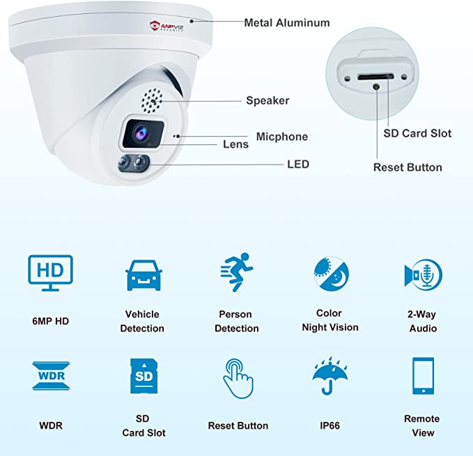 Anpviz PoE IP - Telecamera per Esterni con Rilevamento di Persone/Auto, Telecamera di Sorveglianza Esterna, 30 m a Colori e Visione Notturna IR, Audio a 2 vie, con slot per scheda micro SD. PoE ha un'alta risoluzione di 6 MP (3072 x 2048), che può registrare video e immagini più nitide rispetto a 5 MP. IP66 impermeabile telecamera di sorveglianza PoE. (La telecamera PoE Outdoor supporta ON-VIF NVR e software di terze parti come ISpy, BlueIris) Riconoscimento intelligente di persone/auto: la telecamera IP per esterni utilizza la tecnologia di rilevamento dell'intelligenza artificiale, questa telecamera IP per esterni può rilevare persone e auto in tutte le attività. Se una persona sospetta o un'auto sospetta entra in casa o nel negozio, la fotocamera avvisa e invia notifiche in tempo reale o notifiche e-mail al tuo dispositivo. Audio a due vie e accesso remoto: la telecamera IP PoE dispone di un microfono integrato e un altoparlante, puoi parlare da remoto con la tua famiglia davanti alla fotocamera e anche allontanare i ladri con la tua voce. La fotocamera supporta iOS/Android/Windows PC/Mac. È possibile visualizzare la trasmissione live in qualsiasi momento e ovunque tramite l'app Danale o il client. Visione notturna a colori e IR, dispone di due modalità di visione notturna tra cui scegliere: visione notturna a colori o visione notturna a infrarossi. Quando la telecamera IP PoE rileva qualcuno, il faro si accende automaticamente (può anche essere acceso manualmente), con chiara visione notturna a colori e la distanza di visione notturna può raggiungere i 30 metri. Supporto di memoria micro SD: fino a 256 GB di memoria micro SD (non inclusa). POE è facile da installare e collegare.