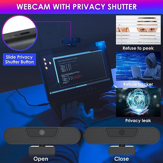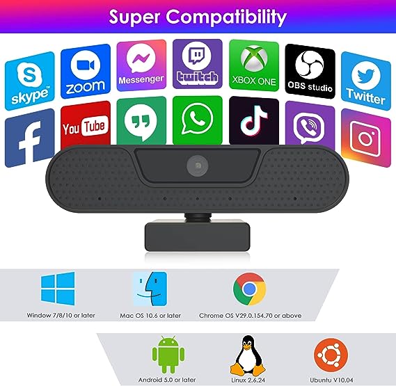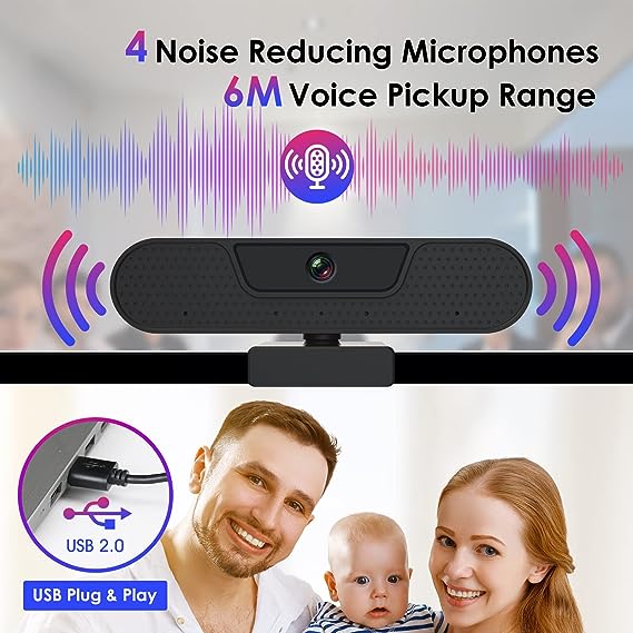 Webcam PC 4K supporta la registrazione ad alta definizione 4K@25 fps, 1080p@30fps, 8 Megapixel, cattura perfetta di ogni dettaglio dell'immagine, Perfetto per webinar, videoconferenze, trasmissioni in diretta, webinar, gaming live, Skype e altro ancora. 4 Microfoni Stereo Super Chiari: Dotato di quattro microfoni integrati, fotocamera PC Può catturare automaticamente la voce delle persone entro 6 metri senza indugio. La tecnologia di riduzione del rumore combinata con un esclusivo algoritmo vocale assicura che la voce di chi parla sia chiara e naturale. Autofocus e Correzione Della Luce: La funzione AutoFocus può garantire che il video sia sempre chiaro e stabile. Il bilanciamento automatico del bianco e il controllo dell'esposizione rendono l'immagine più colorata e realistica. Anche le condizioni di luce deboli non influiscono sulla qualità dell'immagine. La webcam usb full hd con grandangolo di 85° garantisce la copertura in più posti. - Plug&Play con Protezione Della Privacy: webcam pc 1080p può essere installata e utilizzata direttamente senza installare altri plug-in; Design integrato dei cappucci di protezione della privacy per evitare passaggi di installazione, protegge efficacemente la privacy e la sicurezza e mantiene pulito l'obiettivo. il pacchetto include treppiedi mobili e interfacce di tipo C.
