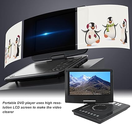Schermo: il lettore DVD portatile da 9 pollici utilizza uno schermo LCD ad alta risoluzione per rendere il video più chiaro. La rotazione di 180° offre l'angolo di visione adatto e un facile posizionamento. Lungo tempo di standby: con la batteria al litio ricaricabile ad alta capacità integrata da 800 mAh, puoi goderti la visione dei tuoi DVD preferiti fino a 90 minuti. Funzione: è possibile riprodurre unità flash USB, schede SD, MMC e dischi rigidi rimovibili. Supporta la radio FM, la copia di CD MP3 e la funzione 3D. Dotato di due telecomandi supporta il gioco. Facile da usare: chip di correzione degli errori, disco di lettura veloce e stabile, supporto per la riproduzione di più formati, supporto per il download di più formati e nessuna necessità di decodifica.