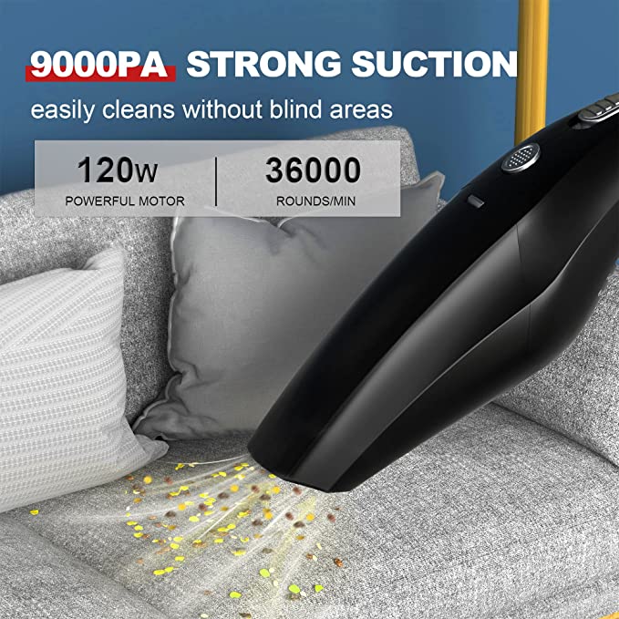 ASPIRAZIONE POTENTE: l'aspirabriciole senza fili ha una forte potenza di aspirazione, adotta un motore potente ad alta potenza da 120 W. Mantieni la tua auto pulita con questo aspiratore auto, che può assorbire rapidamente tutto lo sporco o i detriti, inclusi peli di animali domestici, frammenti di carta, polvere, cenere, ecc. SENZA FILI E PORTATILE: Il mini aspirapolvere TEMOLA è progettato per una facile pulizia e conservazione. È più o meno il peso di un bicchiere d'acqua. Senza cordone, dotato di una borsa con coulisse, lo stoccaggio è semplice. Puoi facilmente utilizzare questo mini aspirapolvere senza fili in auto, ufficio, scale, cucina o in qualsiasi angolo difficile da raggiungere. PULIZIA PROFONDA COMPLETA: Dotato di 2 diversi tipi di accessori per ottenere un'aspirazione efficiente e una pulizia profonda (1 spazzola per la polvere, 1 strumento per fessure). È inclusa una borsa con coulisse per riporre facilmente l'aspirapolvere per auto e questi accessori per l'aspirapolvere. FILTRI HEPA: Dotato di filtro HEPA lavabile e riutilizzabile, ottenendo un filtro profondo. La pulizia regolare del filtro può aiutare a mantenere l'effetto di aspirazione e prolungarne la durata. UTILIZZO DI LUNGA DURATA: Ricaricabile, ci vogliono circa 3 ore per caricarsi completamente e il tempo di utilizzo continuo è di oltre 15 minuti.