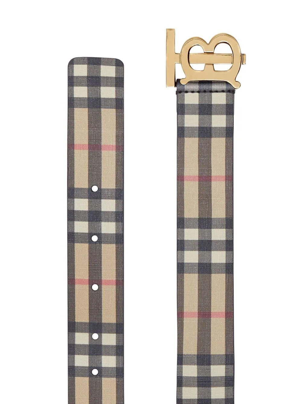 Burberry - Cintura con fibbia Vintage Check - Placca con monogramma TB, motivo Vintage check, chiusura con fibbia ad ardiglione e fori per fibbia. Materiale: pelle. Origine: Italia - Composizione: Esterno: Poliuretano Termoplastico (TPU) 75%, Cotone 25% - Fodera: Pelle 100%
