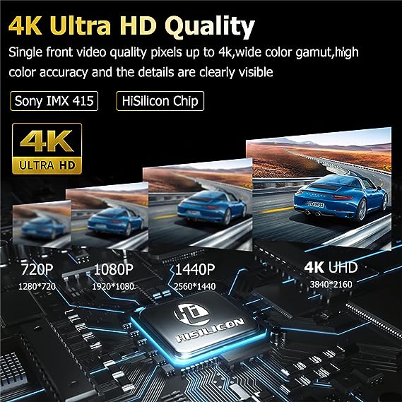 Qualità Ultra HD 4K - Pixel di qualità video frontale singolo fino a 4K, ampia gamma di colori, elevata precisione del colore e i dettagli sono chiaramente visibili. L'apertura F1.8, l'obiettivo interamente in vetro a 6 strati ha una buona trasmissione della luce, una buona sensibilità e immagini nitide di notte. Immagini HDR ad alta gamma dinamica - Nessuna paura dell'esposizione e della notte oscura. Fornire più gamma dinamica e dettagli dell'immagine, utilizzare l'immagine LDR con i migliori dettagli corrispondenti a ciascun tempo di esposizione per sintetizzare l'immagine HDR finale, che può riflettere l'effetto visivo nell'ambiente reale. - Supporta scheda 256G La memoria esterna massima di questo prodotto è 256G - Può registrare ininterrottamente per 48 ore, puoi salvare più video registrati. Garanzia di guida notturna - Forte soppressione della luce e antiriflesso. Dotato di 6 strati di lenti ad alta trasmissione della luce, ampia apertura da 1,8 F, registrazione ad alta definizione in controluce e in avanti, la targa è chiaramente visibile di fronte ai viaggi notturni forte soppressione della luce e antiriflesso. Obiettivo retrovisore impermeabile IP68 - Installato sulla targa, può resistere a forti piogge.