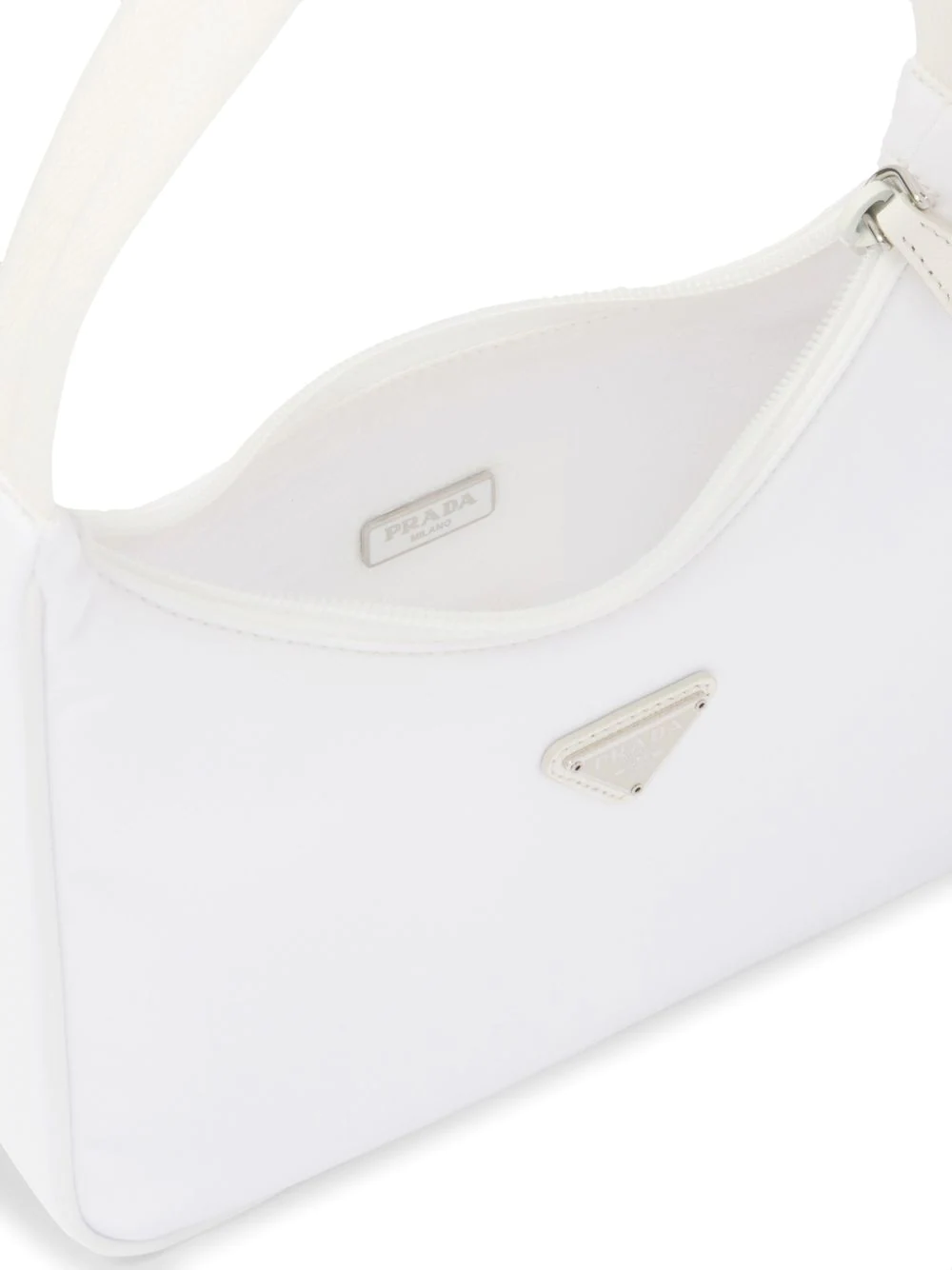 Prada - Borsa tote mini con placca logo - Bianco, placca con logo, chiusura superiore con zip, scomparto unico e manico singolo. Composizione: Esterno: Tessuto 100%