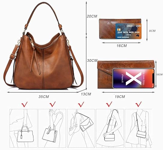 Grande Tracolla Pelle - Borse a Spalla - Portafoglio 3 Pezzi Tote