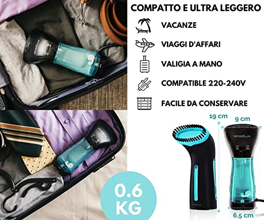 Ferro da Stiro Verticale WiredLux, Stiratrice Verticale per Casa e Viaggio, Steamer Stiratore a Vapore Portatile - Pronti in 25 secondi e 100% Anti-Perdita, Stiratura Facile e Veloce, Accessori Inclusi