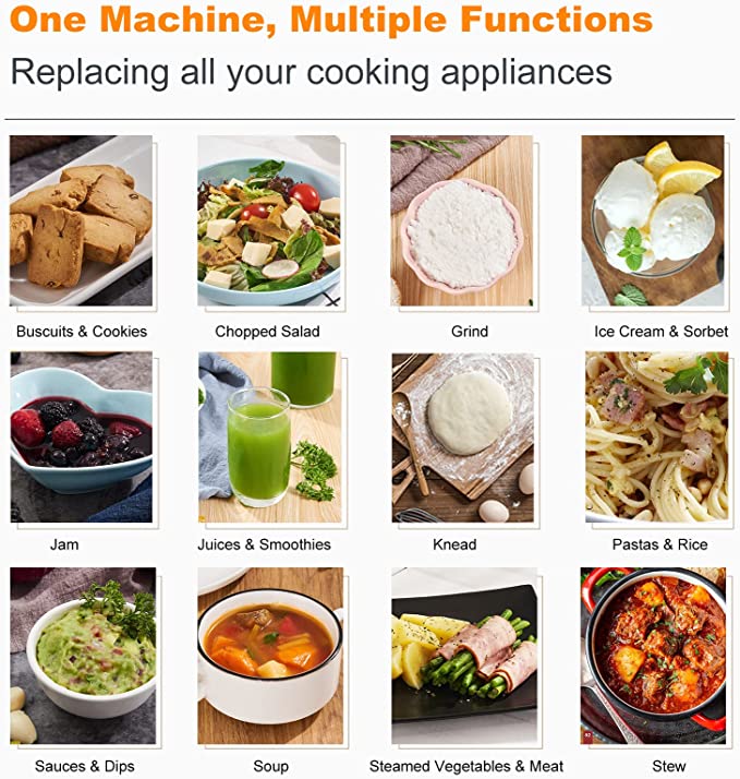 NewKern con Ricette Guidate Integrate, Robot da Cucina Multifunzione, 1800W, 4L, 12 Programmi Automatici e Modalità Manuale. MOTORE AD ALTE PRESTAZIONI: Integrato con un potente motore Switch Reluctance che mantiene la velocità di miscelazione anche con carichi pesanti, può impastare 1KG di pasta di pane in soli 3 minuti. Questo motore durevole consente alla lama di girare a una velocità compresa tra 50 e 11000 giri / min, permettendole di passare dalla direzione di miscelazione avanti e indietro. RICETTE GUIDATE: 175 ricette preinstallate visualizzate sul touch screen da 7 pollici, con connessione WIFI per aggiornamento continuo. Le ricette passo passo con audioguida sono disponibili in inglese, francese, tedesco, italiano, spagnolo. MULTIFUNZIONALE: sostituisce più elettrodomestici da cucina con 12 modalità di cottura automatiche tra cui impastare, emulsionare, soffriggere, stufare, macinare, tritare, fermentazione, cuocere a vapore, bollitore, sous vide (fino a 24 ore), riscaldamento ad alta velocità e autopulente . Puoi anche creare il tuo piatto utilizzando la modalità manuale. La temperatura può essere impostata da 40-120 °C, velocità di miscelazione da 50-11000 giri/min (Coppia massima: 2Nm).