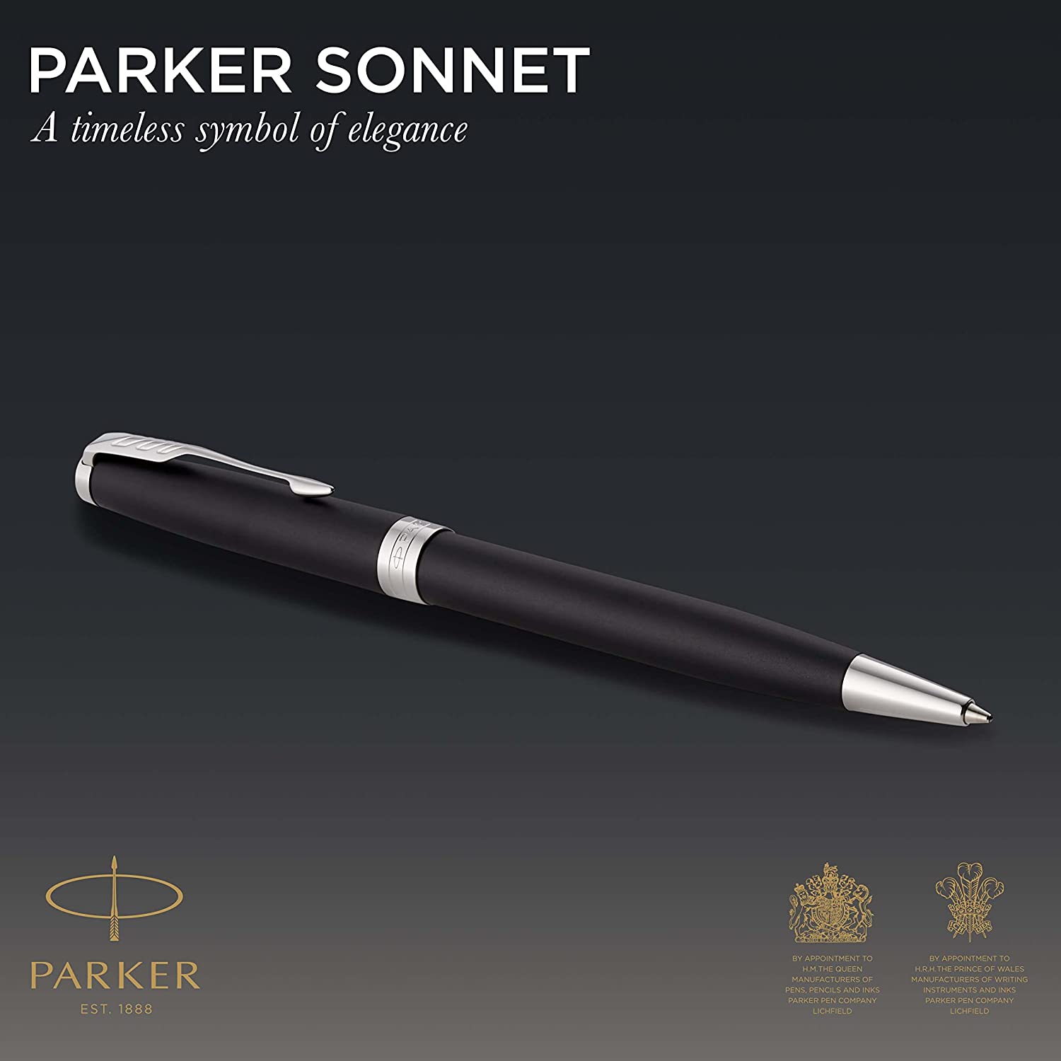 PARKER Sonnet. Penna a Sfera, Laccatura di Colore Nero Opaco con Finiture in Palladio, Pennino Medio