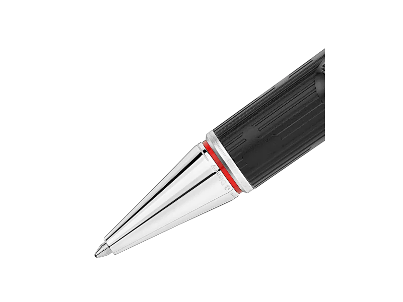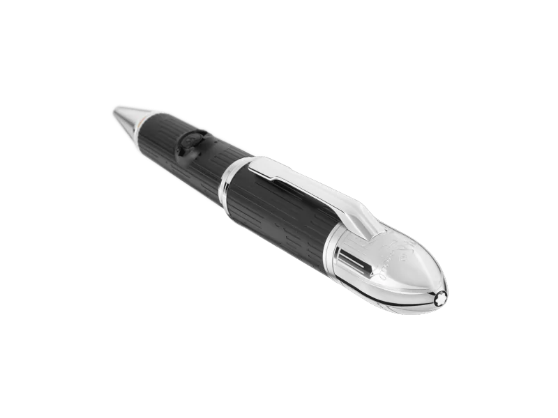La penna a sfera Great Characters Walt Disney è un'edizione speciale che rende omaggio ad uno dei produttori cinematografici più influenti e stimati del suo tempo, grazie al suo spirito pionieristico e alla sua capacità creativa: Walt Disney. Il corpo e il cappuccio sono in pregiata resina nera opaca e sono delineati da una texture con l'immagine stilizzata di Topolino, mentre i colori fanno riferimento al poster originale del cortometraggio “Steamboat Willy” del 1920. Il bariletto con l'immagine in rilievo di Topolino e il cappuccio con la firma di Walt Disney rendono quest'accessorio decisamente originale. Una serie di coordinate incise sul cono riportano la posizione esatta del garage dello zio di Walt Disney dove, insieme al fratello, aveva allestito una piccola sala di ripresa. Clip finitura platino - Bariletto - Pregiata resina nera con testa di Topolino in 3D - Cappuccio Pregiata resina nera - Peso 57.2 g - Dimensioni 142 x 16.5 mm