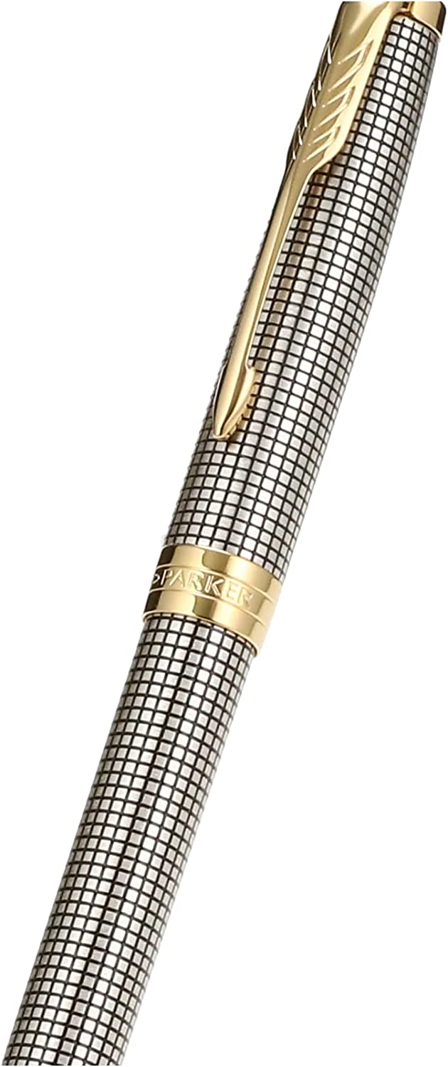 PARKER Sonnet Penna a Sfera, Argento 925 (Cesellato), Dettagli Placcati in Oro, Pennino Medio. Cappuccio e corpo argento sterling cesellato impreziositi da dettagli e clip con finiture in oro - Penna a sfera con meccanismo a scatto retrattile e punta media. Assemblata e controllata a mano per garantire una qualità perfetta
