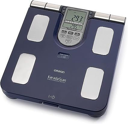 Misurazione con 8 sensori sia per le mani sia per i piedi - Misura la muscolatura scheletrica - Per una misurazione completa dei parametri corporei - OMRON Bilancia Pesapersone Digitale, Calcolo Massa Grassa, Grasso Viscerale, Muscoli Scheletrici, Metabolismo a Riposo, Blu