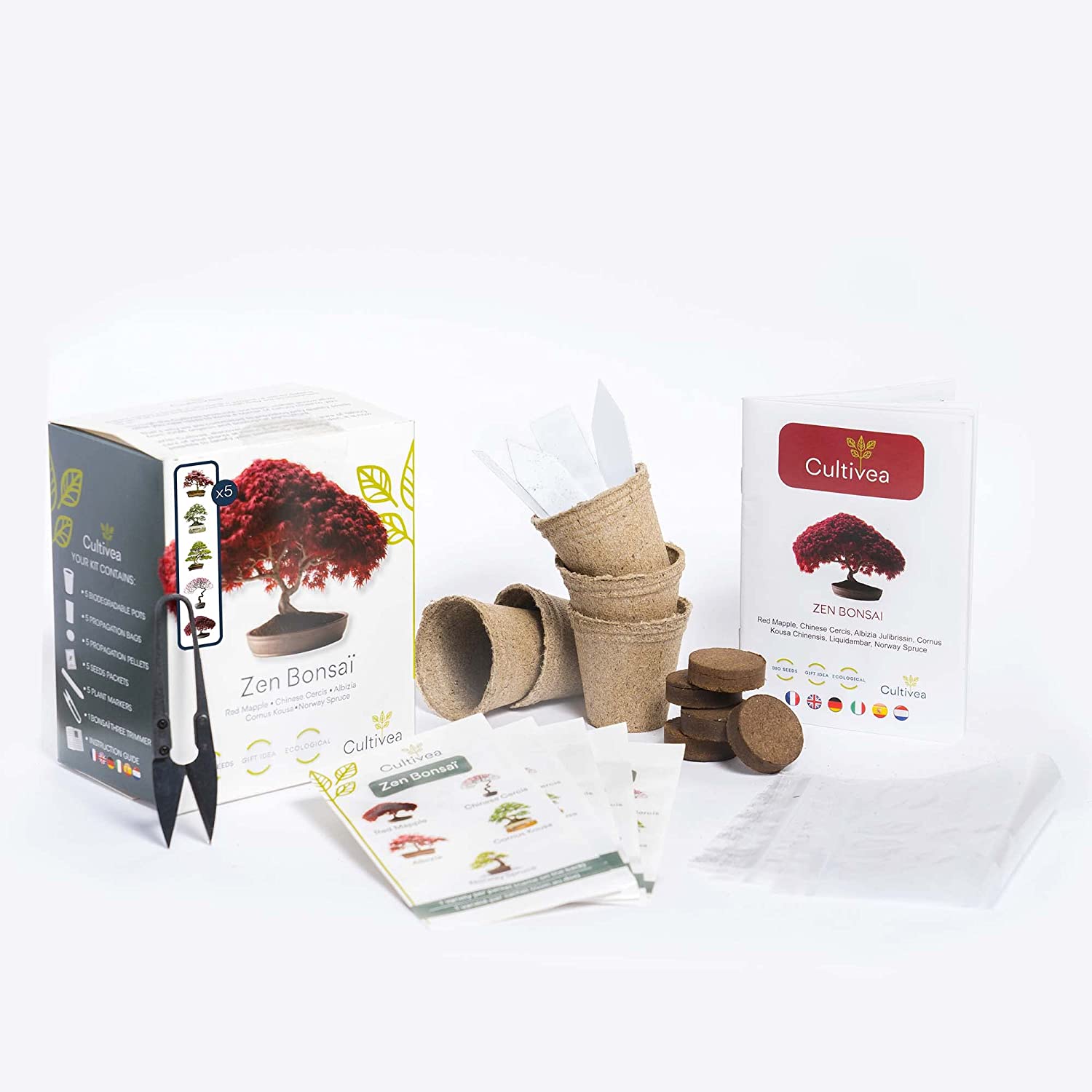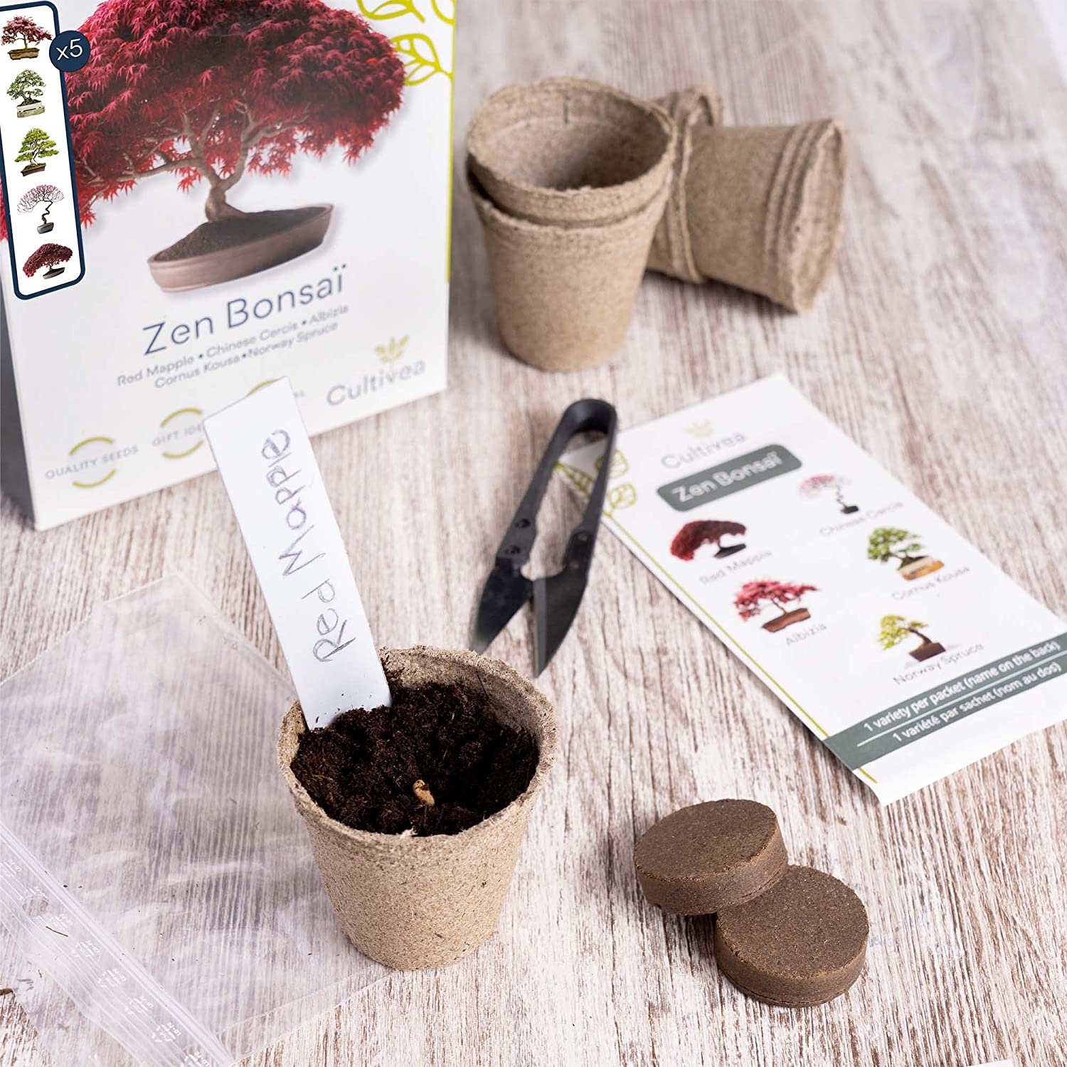 Mela rossa, Cercis cinese, Cornus Kousa, Albizia, Abete rosso. Il kit contiene tutto ciò che serve per far spingere il vostro bonsai in modo semplice e duraturo. Nel kit sono quindi presenti terriccio, semi, bustine di propagazione, marcatori, forbici e vasi biodegradabili. Inoltre non vi perderete mai o in mancanza di consigli seguendo le istruzioni che vi aiuteranno passo dopo passo.