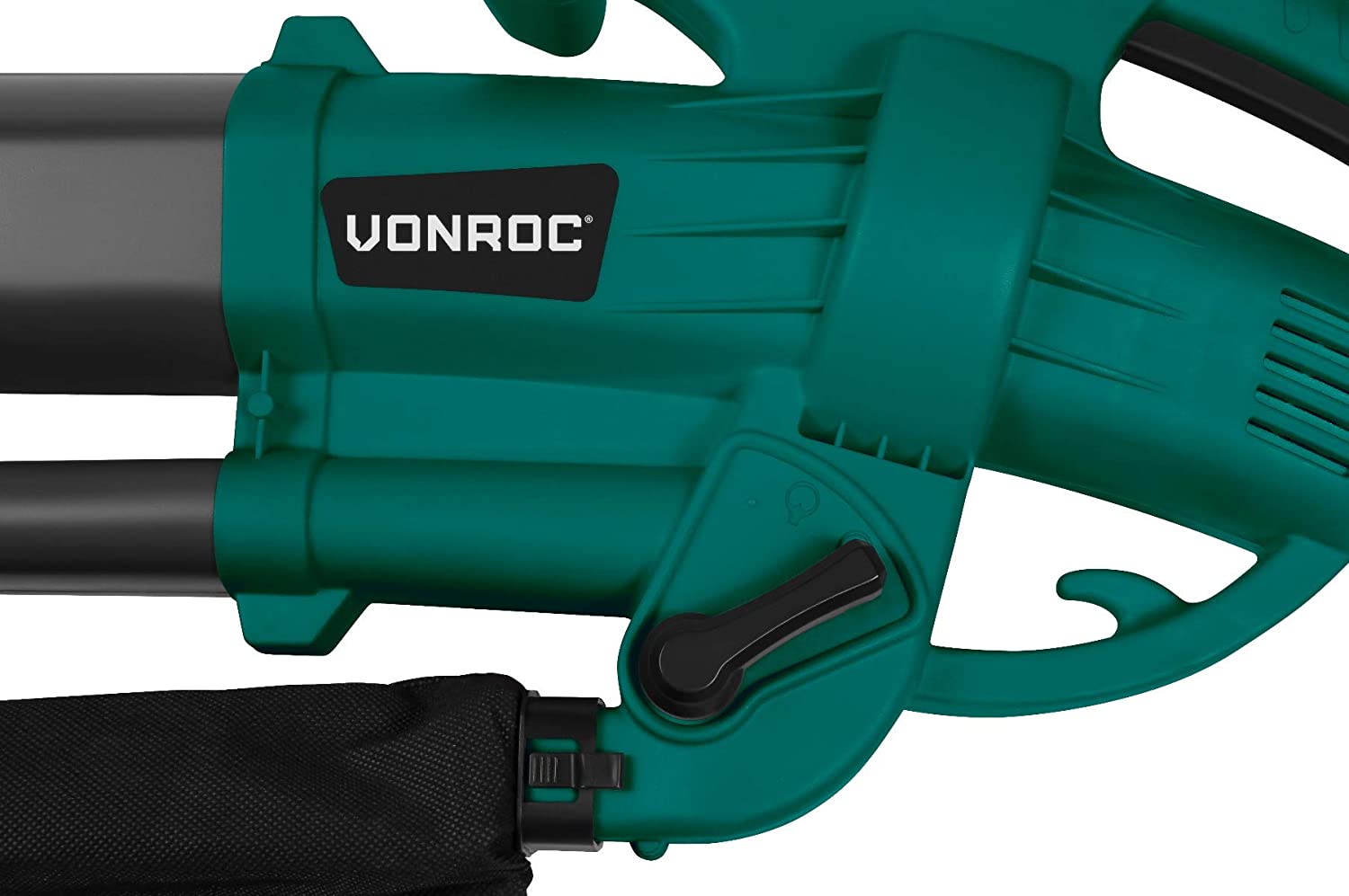 VONROC: Soffiatore elettrico per foglie 3300W - 3 in 1, soffiatore, aspiratore e trituratore. Max velocità aria 270 km/h. Include borsa di raccolta da 40 litri. 270 km/h velocità di soffiaggio. Potente motore da 3300W. 3 funzioni: soffiatore, aspiratore e trituratore. Il trituratore è in grado di sminuzzare lo sporco fino a 10 volte la loro dimensione. La sacca di raccolta ha una capacità di 40 litri. Comodità e minimo sforzo. Il suo peso di 3 kg e le ruote anteriori di cui è dotata, rendono la macchina molto comoda durante il lavoro ed è equipaggiata con una tracolla per il trasporto.