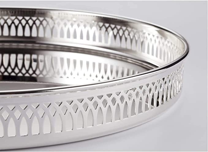 Vassoio da Portata Placcato in Argento pregiato, Vassoio Rotondo con Diametro di 30 cm
