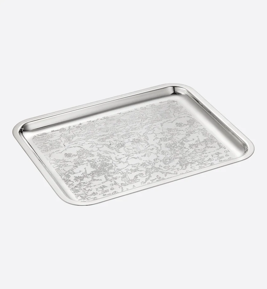 CHRISTIAN DIOR: Vassoio inciso - Metallo con finitura color argento. Questo vassoio in metallo con finitura color argento, creato da Cordelia de Castellane, è impreziosito dal motivo Toile de Jouy per bambini inciso. 99% ottone, 1% argento - Dimensioni: 20 x 16 cm