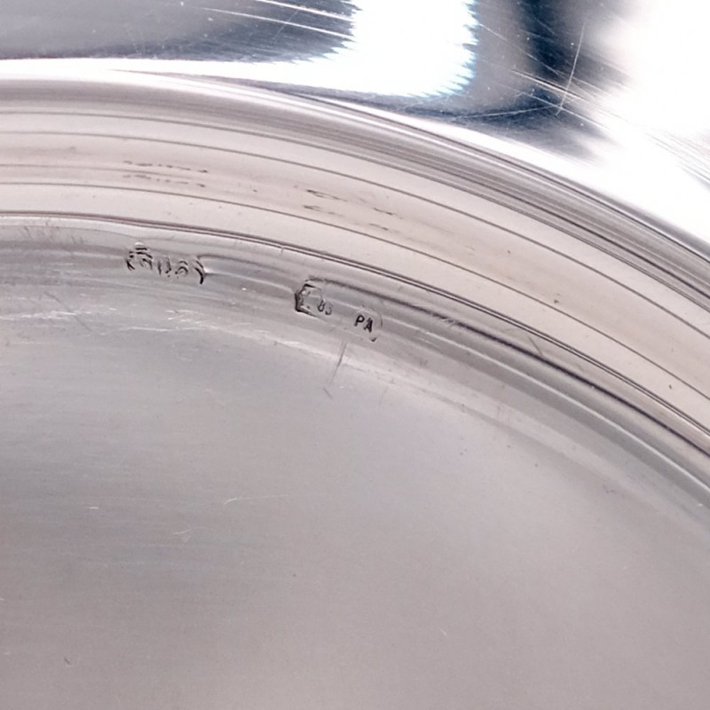 Anfora in Argento 800 con Piatto Stile Impero by Siddiolo Argenti. Pregiati pezzi d'argenteria prodotti da maestri argentieri della scuola palermitana. L'anfora pesa gr. 465, ha un diametro di base di cm 9 e l'altezza è di cm 35,5. Il piatto pesa gr. 305, ha un diametro di base di cm 25 e l'altezza è di cm 1. Il manico dell'anfora è in argento microfuso finemente decorato. L'alta qualità dei materiali e della lavorazione sono garantiti dai marchi legali impressi sul pezzo