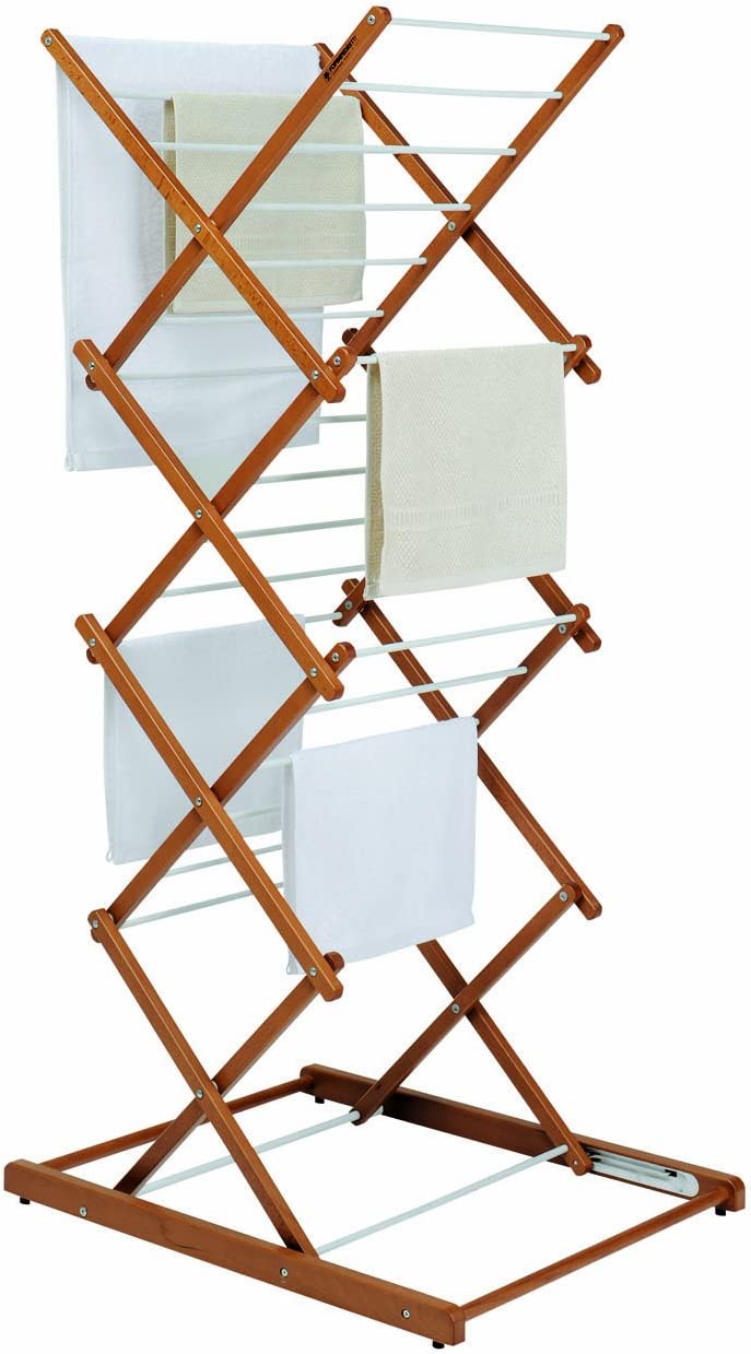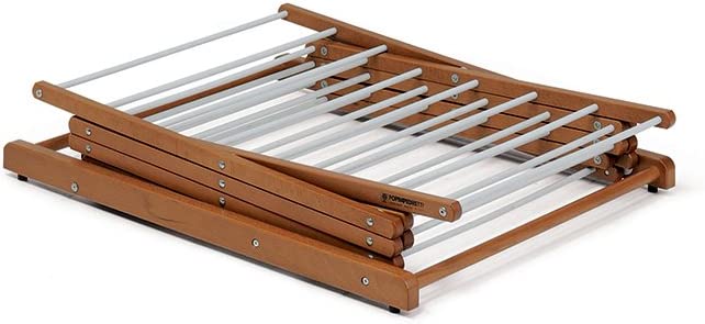 Foppapedretti Stendipiù. Stendino pieghevole in noce. Stendibiancheria con sistema di apertura a pantografo estensibile a 2 altezze - Struttura in legno massiccio di faggio e bacchette in materiale plastico - Dimensioni aperto: 63 x 51 x 87.5/131 cm - Dimensioni chiuso: 66 x 51 x 12 cm