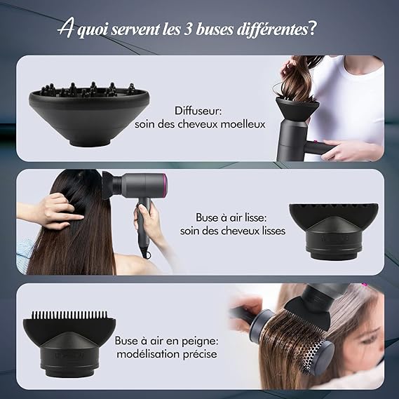 Asciugacapelli Ionico Phone per Capelli Professionale ioni 2000W AC motore professionale con 3 impostazioni di calore, tasto aria fredda con 1 diffusore e 2 concentratori