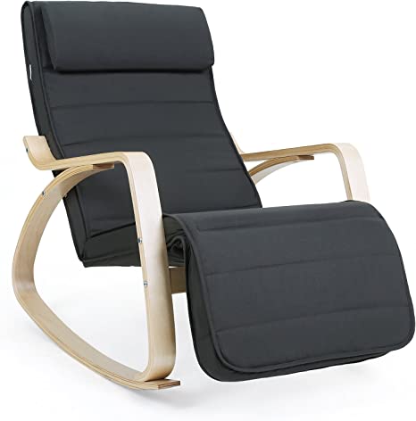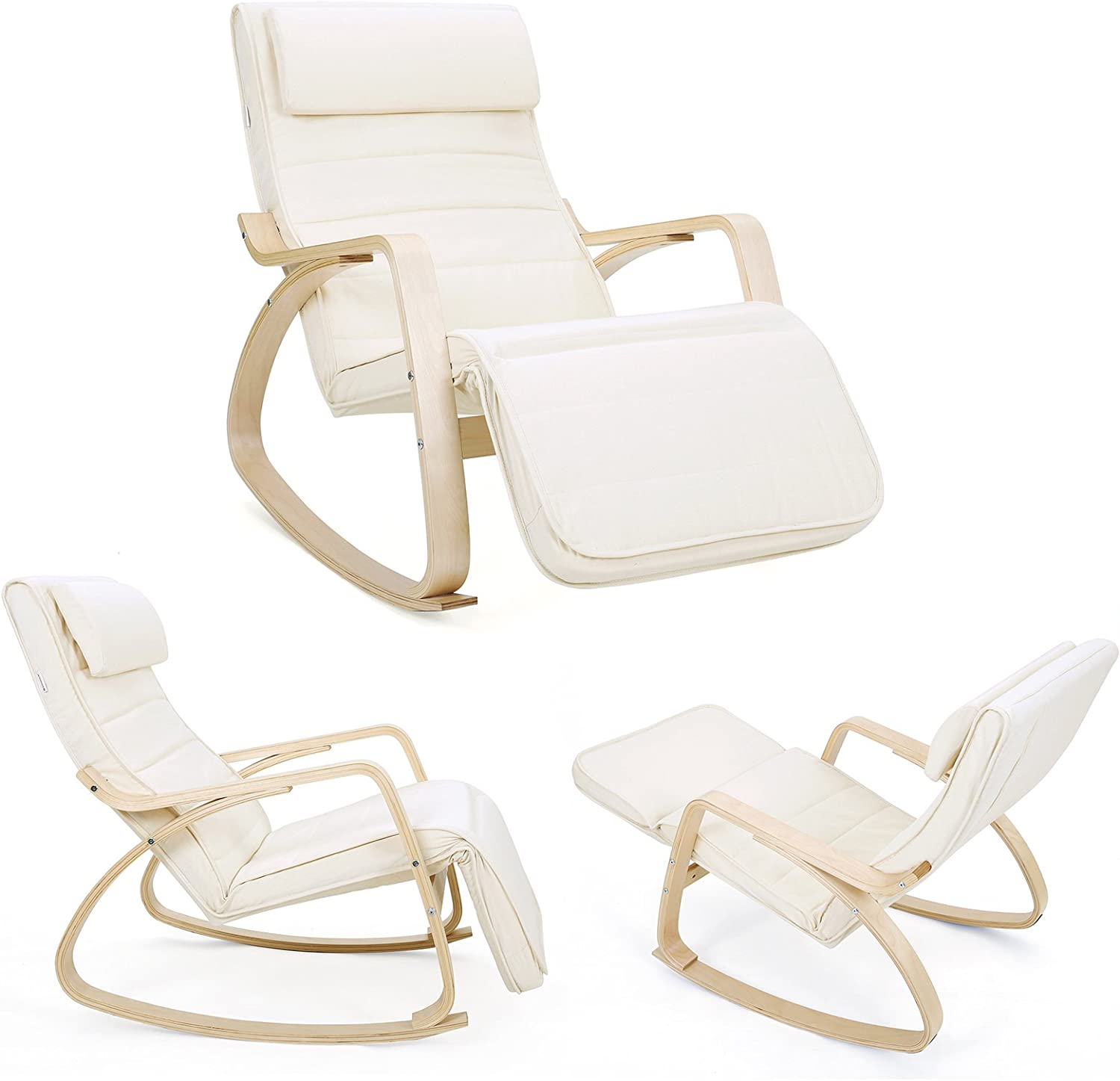 Poltrona a Dondolo con Poggiapiedi Regolabile in 5 Posizioni, Max Portata 150 kg, braccioli in legno di betulla. Oscilla dolcemente tra i braccioli in legno di betulla di qualità! Completati da un telaio in ferro, rendono la sedia a dondolo affidabile.