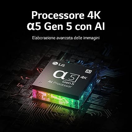 Il TV LG integra lo standard DVB-T2 HEVC Main 10 compatibile con il prossimo cambio di standard del Digitale Terrestre - RISOLUZIONE REAL 4K: una risoluzione 4 volte superiore al Full HD, che impiega circa 8 milioni di pixel per darti immagini visibilmente più nitide e particolareggiate. PROCESSORE α5 GEN 5: il nuovo processore migliora i contenuti trasformandoli in 4K, regolando la luminosità in base all'ambiente e adattando il suono in base a ciò che ascolti. CLOUD GAMING CON GOOGLE STADIA E NVIDIA GeForce NOW: gioca ai migliori titoli senza usare una console o un PC. Ti basta collegare un controller compatibile e sei pronto per entrare nell'azione. SMART TV WEBOS 22: la nuova smart TV di LG è ancora più intelligente e ti consiglia cosa guardare in base alla tua cronologia. TANTE PIATTAFORME DI STREAMING A DISPOSIZIONE: Netflix, Disney+, Amazon Prime, DAZN e tante altre app sono già pronte per guardare i film, le serie TV più in voga e gli eventi sportivi in diretta. APP SPORTS ALERT: imposta le tua squadre del cuore e un pratico pop-up ti mostrerà in tempo reale i risultati delle partite, anche mentre guardi altro.