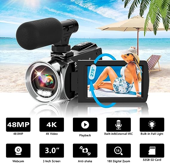 La Videocamera Windancy supporta la ripresa di video 4K 60FPS e 48MP. Questa videocamera dotata di 2,8
