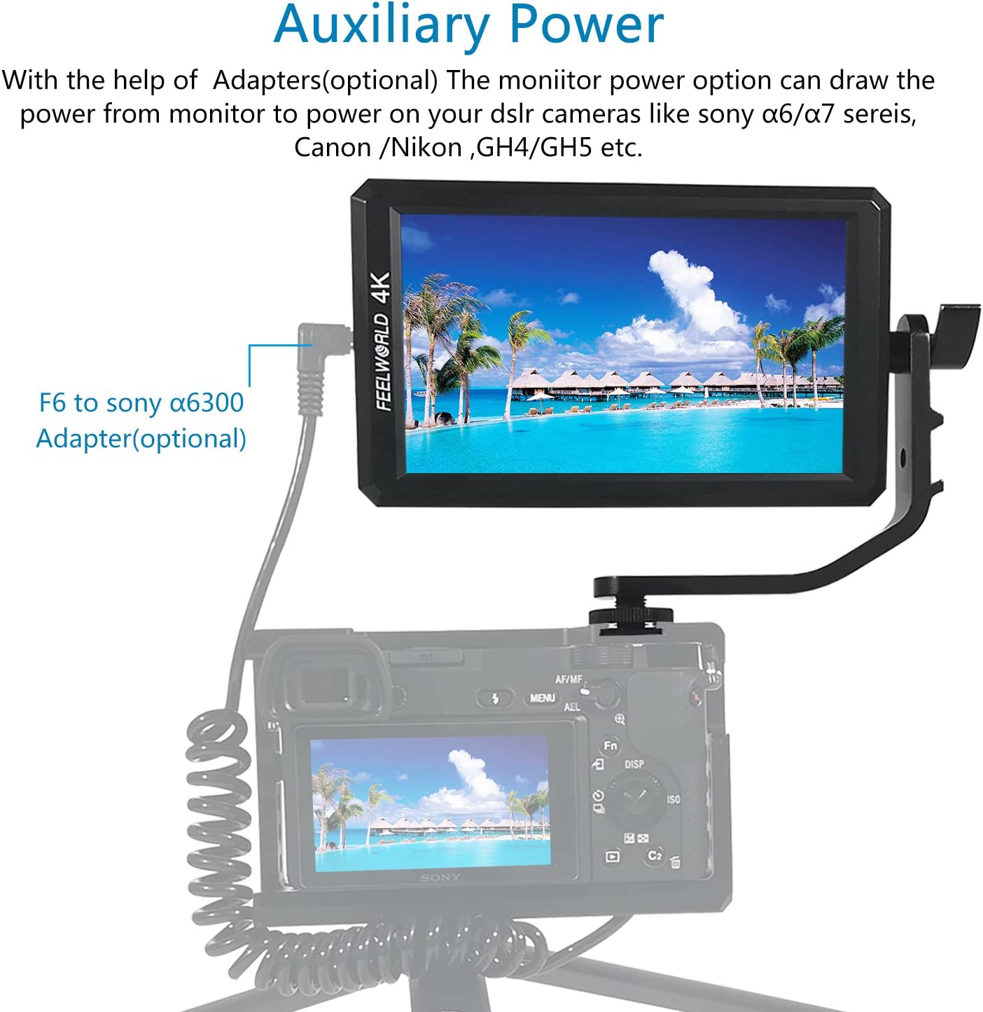 FeelWorld F6 Monitor da Campo 5.7'' Full HD, MA6 - Montor DSLR - Camera Field Monitor - IPS - 4K - Full HD 1920x1080 Pixels - HD Output, Monitor Mirrorless, Monitor Esterno Reflex