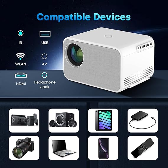 Grazie alla tecnologia LED avanzata, questo proiettore Full HD con luminosità 450ANSI per l'uso quotidiano e risoluzione nativa di 1080P, 20000: 1 rapporto di contrasto e 16:9/4:3 rapporto di aspetto, miglioramento dei pixel e tecnologia di miglioramento del colore - Proiettore gigante. per creare toni di nero più profondi e toni di bianco più chiari. Schermo gigante da 300'' & Correzione Keystone 4P/4D: il proiettore video offre a seconda della distanza la dimensione di proiezione da 50