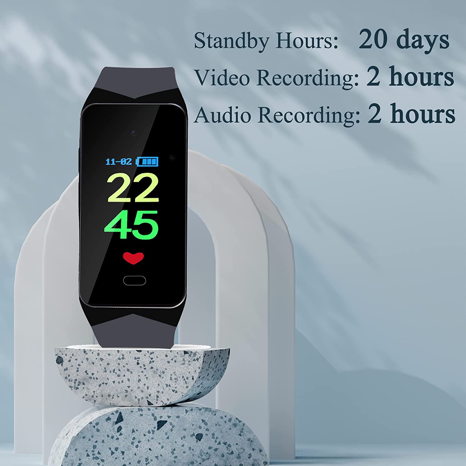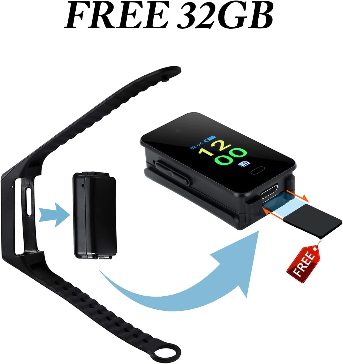 Telecamera 1080P nell'orologio in grado di registrare Video e Audio - Scheda SD da 32 GB - Due pulsanti laterali controllano la registrazione video e audio. Quando lo schermo mostra un centro rosso fisso, la telecamera sta registrando video, quando lo schermo mostra un centro rosso vuoto, la telecamera sta registrando audio